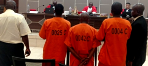 LES JOURNALISTES (majoritairement nationaux), arrivés quelques heures avant l’ouverture de la salle, règlent leurs différents appareils de reportage et d’autres ouvrent leurs blocs-notes. La salle affiche l’image d’un luxueux duplex fraichement bâti, balayée par une forte lumière émise par de grosses ampoules. Le magistrat Alain Ouaby-Bekaï, (Procureur Spécial Adjoint) présente les membres du parquet spécial devant soutenir l’accusation. Ces membres sont constitués de Mr Alexandre Tindano substitut international du procureur spécial, Mr Romarick Kpangba substitut national et Mr Alain Tolmo, substitut national. Les accusés assis côte à côté dans le box, chacun avec sa bouteille d’eau minérale se regardent calmement ; non loin d’eux leurs avocats survolent une panoplie de documents.