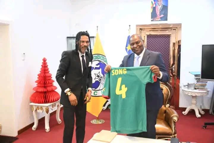 Vient le temps de la confirmation ; et qui pour conduire cette équipe sur le chemin d’autres victoires ? Rigobert Song Bahanag, l’emblématique star camerounaise des terrains donc l’aura couvre toute la planète football et connu pour avoir un cœur de lion indomptable et un mental d’un gagneur engagé. Le ministre de la Jeunesse et de Sport a signé hier, 13 janvier, un arrêté portant sa nomination sur le banc des Fauves comme Sélectionneur Manageur ; et ce choix ambitieux est salué par de nombreux amateurs de football centrafricains, en commençant par le Chef de l’Etat, lequel lui a accordé des heures d’audience au palais de la Renaissance (photo) la veille de la nomination. Jules Njawé (fils du célèbre journaliste camerounais Pius Njawé de regrettée mémoire) aujourd’hui ministre Conseiller à la Présidence Centrafricaine, propriétaire d’une équipe (portant son propre nom) de 1ère division du championnat du pays et grand ami du ministre des Sports qui aurait facilité la venue de l’ancien « capitaine courage » des Lions indomptables, près de quatre ans après la tentative ratée au même poste de son compatriote, François Omam Biyik.