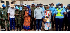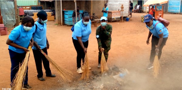 De par sa position stratégique, le Rond-point Marabéna symbolise à lui seul Bangui : entrée et sortie principales par voie aérienne de la capitale ; et c’est à cet endroit que des femmes de la police municipale ont choisi de célébrer à leur manière la Journée consacrée aux droits de la Femme. Très tôt ce samedi, 08 mars, le ministre l’Economie, du Plan…, le prof Filakota est discrètement présent dans une foule constituée pour la circonstance de « soldates de la propreté » en uniforme de la police municipale, et prête à prendre d’assaut le mythique rond-point pour le rendre salubre. Appuyées dans leur élan par des militaires du contingent rwandais, ces femmes, avec à leur tête Noëlla Malingou, sont venues toutes contentes, on dirait elles sont farouchement contre ces dérapages que certaines de leurs sœurs/mères s’adonnent : pour certaines d’entre elles ; le 08 mars est l’occasion de s’adonner aux multiples dérives alcoolisées et de débauches; mais le personnel féminin de la police municipale penserait autrement en nous rappelant que ces droits (de la femme) vont étroitement avec des devoirs : devoirs conjugal, devoir de responsabilité, devoir de civisme, devoir d’amour pour sa ville en particulier et de son pays en général, etc.