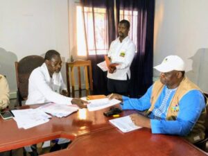 Eddy Symphorien Kparekouti est donc le deuxième à déposer sa candidature à la magistrature suprême, après celle du Chef de l’Etat une semaine plutôt. C’est à 10h50’ que le leader politique qui croit en ses chances face à tous ses prochaines adversaires donc Touadéra fait son entrée au sein de l’ANE. Quelques minutes après, le patron des lieux, Mathias Barthelemy Morouba l’accueille dans la grande salle, il est vite invité à s’assoir sur la même chaise qu’avait occupé le représentant du Chef de l’Etat pour le même exercice de question/réponse autour de 15 pièces exigées et inscrites sur le bordereau de réception de dossier de candidature à l’élection présidentielle donc la date est connue : 28 décembre prochain. De la déclaration de candidature (trois exemplaires) à la copie de la carte d’électeur en passant par la profession de foi et une quittance du versement de la caution de 15 millions. Le candidat désormais déclaré (il pourrait porter le N°2) n’a pas eu besoin de présenter une décision de la demande de mise en disponibilité ; car il n’est pas fonctionnaire encore moins agent de l’Etat. C’est à 11 heures 18 que Eddy Symphorien Kparekouti pose sa signature dans le cahier de consignation, juste derrière l’autre candidat déclaré : Faustin Archange Touadéra.