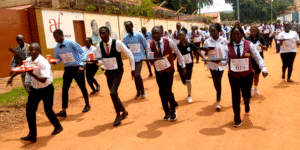 Après Londres, Paris, Genève…Bangui vibre à son tour, au rythme de la « Course de Filles été Garçons de Café » ; initialement prévue le 21 septembre au même moment que d’autres capitales occidentales mais repoussée de quelques jours, précieusement ce dimanche 05 octobre pour de raisons techniques. Une seule image résume à elle seule le poids de l’évènement : l’Ambassadeur de France portant le trophée le plus convoité à la manière des haltérophiles en compétition et parcourant une quinzaine de mètres pour le remettre au vainqueur ; et ce sous les applaudissements du public, venu nombreux pour la circonstance.